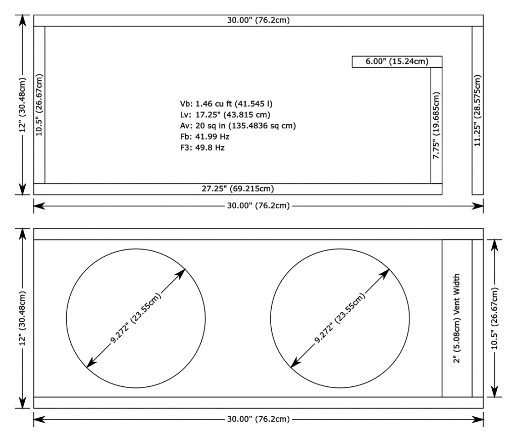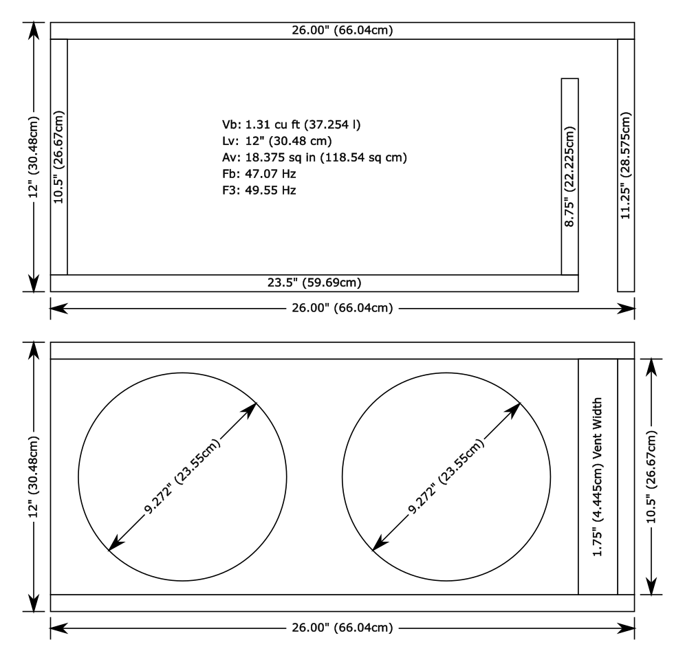 The above designs have been engineered for a “two tier” balance of compatibility: First, between the cabin acoustics of a sedan, hatchback and an SUV, and second, between the two available voice coil configurations, for a total of six balance points. This ensures a linear response and optimal power handling for listening purposes under most circumstances. Please visit our Enclosure Design Service page for custom designs.
