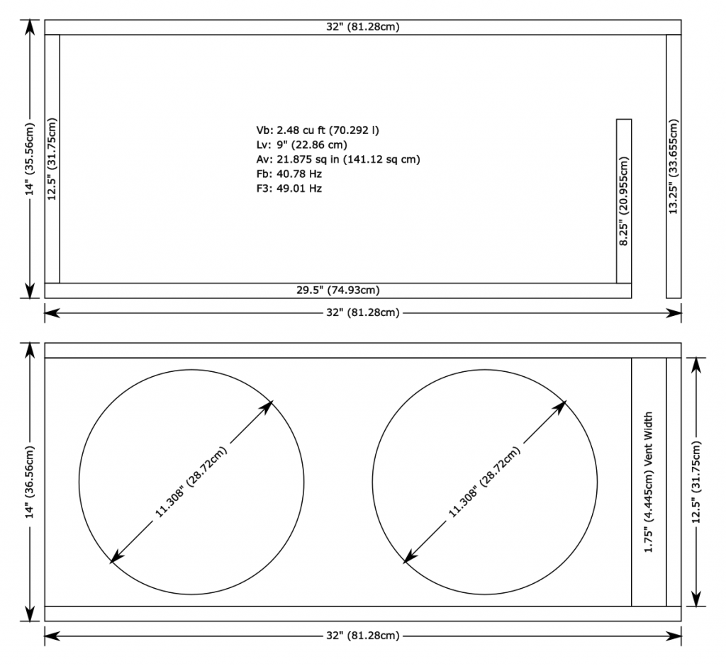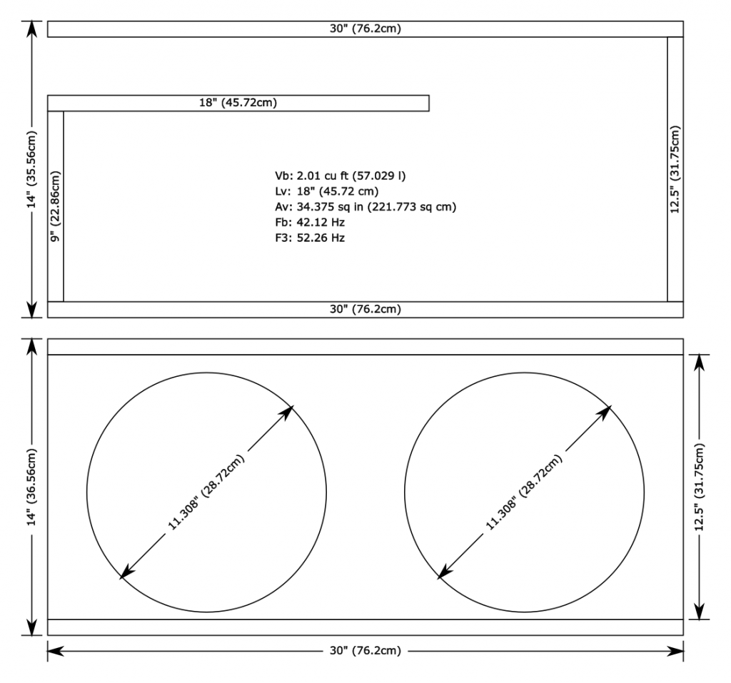 The above designs have been engineered for a “two tier” balance of compatibility: First, between the cabin acoustics of a sedan, hatchback and an SUV, and second, between the two available voice coil configurations, for a total of six balance points. This ensures a linear response and optimal power handling for listening purposes under most circumstances. Please visit our Enclosure Design Service page for custom designs.