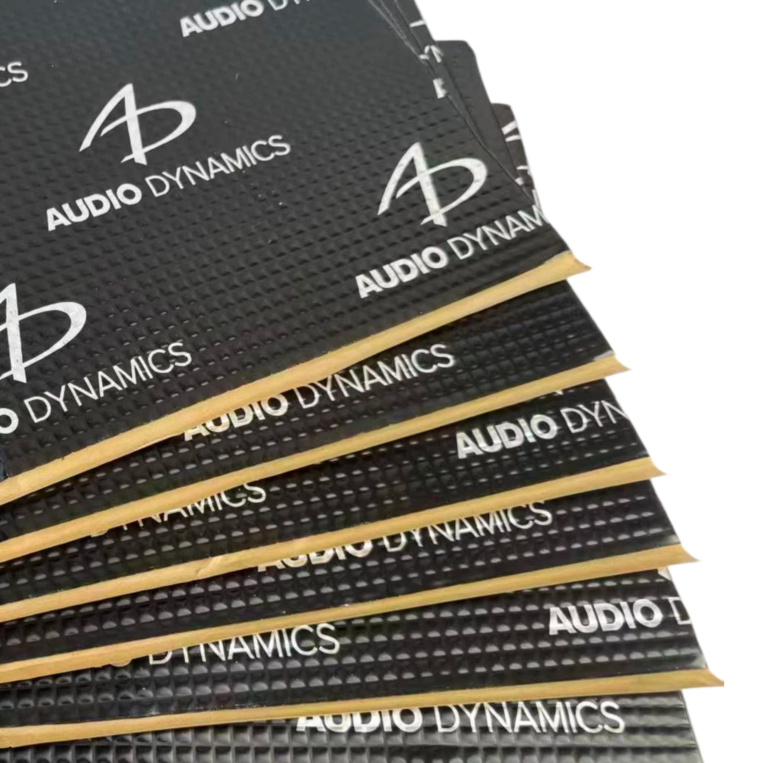 Precision-cut damping sheets of 80mil high quality butyl and black aluminum for high-vibration panels and tight install areas.